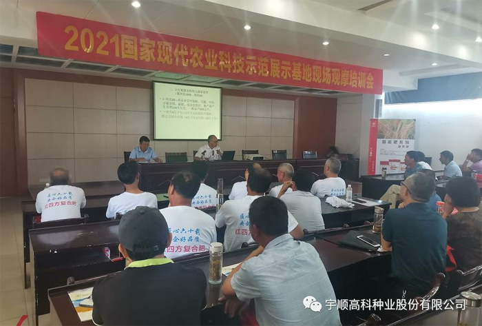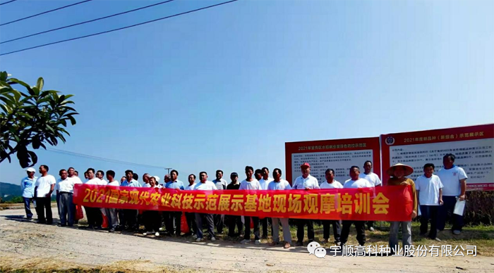 9月18日公司组织召开“2021国家现代农业科技示范展示基地现场观摩培训会”,广东省农业科学院,中盐安徽红四方及市、区农业农村局领导、专家莅临现场观摩指导。参加本次观摩会的有基层农技人员、特色稻种植大户、家庭农场负责人、新型职业农民及宇顺种业联合体成员等。